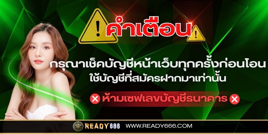 ระบบการฝาก-ถอนเงินของ READY666 ก็เป็นอีกจุดเด่นที่น่าสนใจ ด้วยความรวดเร็วในการทำรายการและความปลอดภัยสูง สมาชิกสามารถทำธุรกรรมได้ตลอด 24 ชั่วโมง ไม่มีขั้นต่ำในการถอน ทำให้การจัดการเงินเดิมพันเป็นเรื่องง่าย นอกจากนี้ ยังมีทีมงานคอยให้บริการและช่วยเหลือตลอดเวลา หากเกิดปัญหาหรือมีข้อสงสัยใดๆ